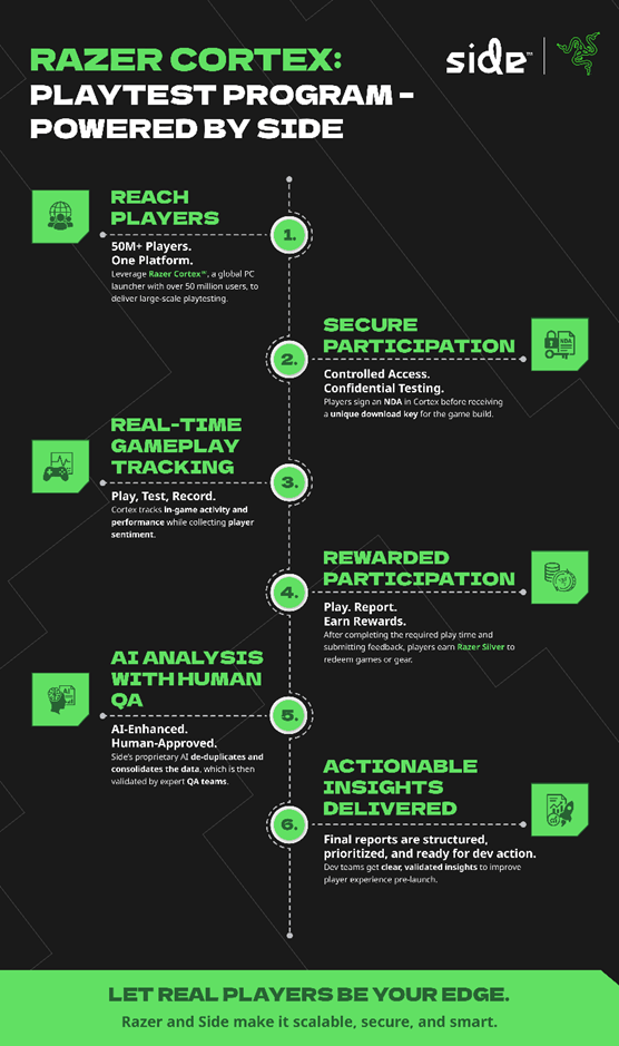 Con Razer Cortex Playtest Powered by Side, la industria da un paso hacia un futuro de QA más ágil, accesible y conectado con la comunidad.