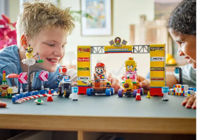 - LEGO® Super Mario™ Mario Kart™ Bebé Peach y Grand Prix (72036): pista de carreras con personajes como Bebé Peach, Lemmy, Lakitu y Toad, además de vehículos emblemáticos.