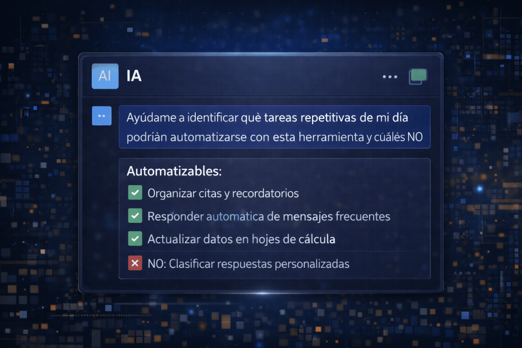 “Ayúdame a identificar qué tareas repetitivas de mi día podrían automatizarse con esta herramienta y cuáles NO.”